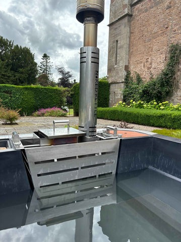 The Naked Kettle wood-fired hot tub is a sophisticated and portable hot tub made out of recyclable plastic. The UV stabilized material is suitable for all weather conditions.